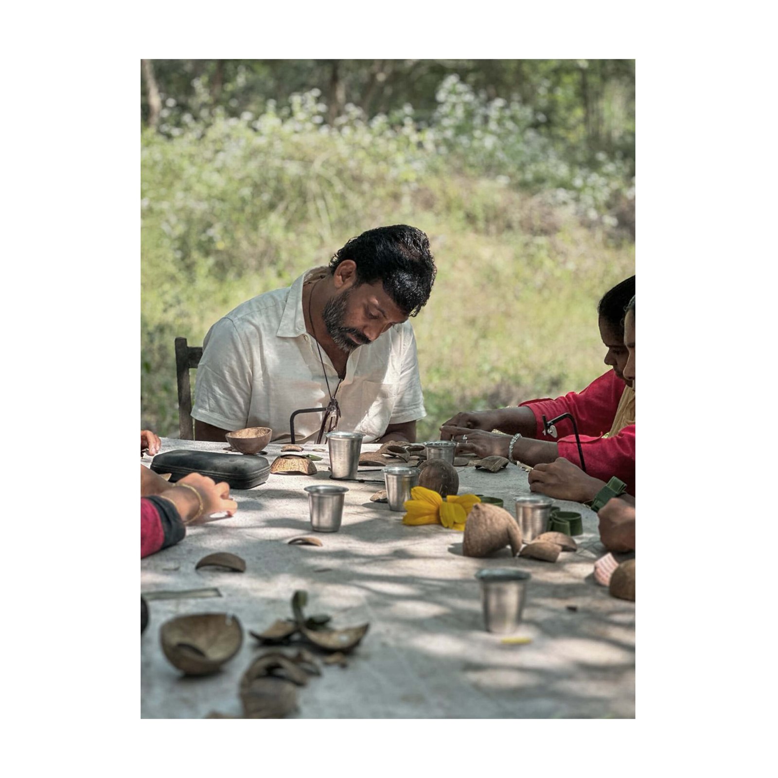 எப்போதும் தன்னுடன் குறைந்தது ஒரு இளைஞரையாவது அழைத்து கொண்டு வந்து அவனுக்கு இந்த புதிய வாய்ப்பை அல்லது சூழலை உருவாக்கி அளிப்பார் ,இந்த முறை மேடை அலங்காரத்தை முதன்மை பணியாக செய்பவர் ரஞ்சித் ,அதே நேரத்தில் தென்னை ஓலைகளில் வித விதமான பொருட்களை செய்து அசத்தினார். மிகுந்த பொறுமையுடன் எல்லோருக்கும் கற்றுக்கொடுத்தார். மறுநாள் ஆவாரங்குட்டை பிள்ளைகள் இருபது பேர் உடன் இருக்க வகுப்பு துவங்கியது, புலக்கடையில் கவனிப்பாரற்று கிடக்கும் சிரட்டைகளுக்கு அன்று நிறைய மரியாதை கிடைத்தது.